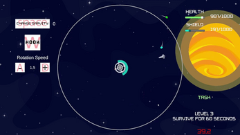 Take on the role of a space station, defend yourself, collect resources, use gravity to destroy the enemy.